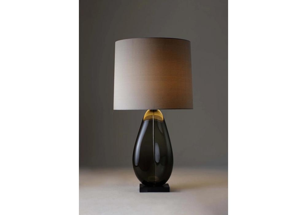 Coffee Bean diseñada por Adam Aaronson para Porta Romana es una lámpara de mesa estructurada en vidrio soplado con base cuadrangular en madera pintada de negro. La pantalla es de tela y apantalla una fuente de luz tipo LED con casquillo E27. Coffee Bean está disponible en diferentes acabados de pantalla y estructura.