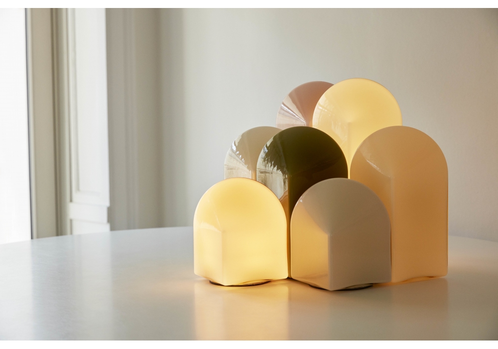Parade diseñada por Jonas Trampedach & Viola Heyn-Johnson para Hay es una lámpara de mesa realizada en vidrio soplado a mano, difusor en ABS translúcido moldeado por inyección y cable de silicona negra. Disponible en diferentes acabados y dimensiones.