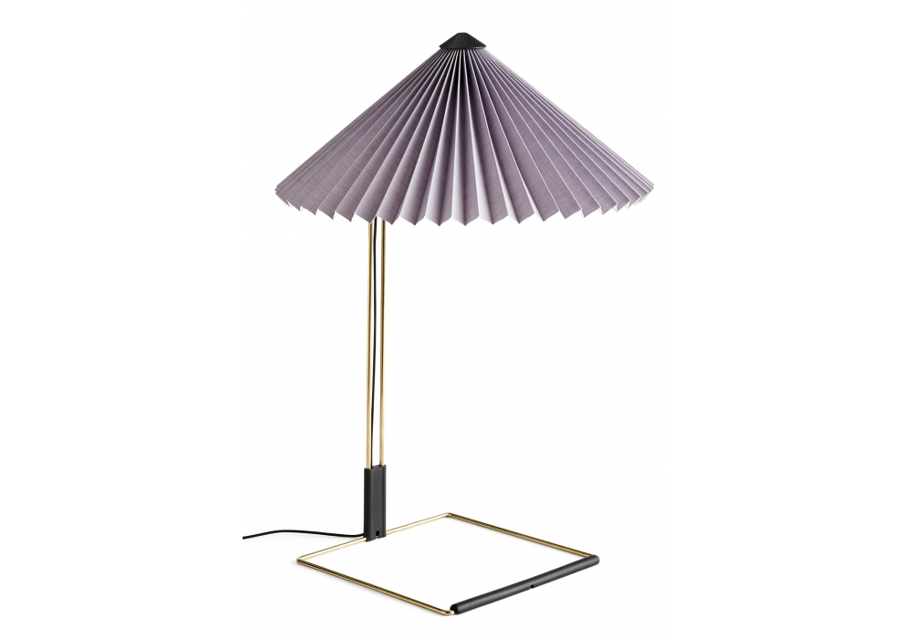 Matin diseñada por Inga Sempé para Hay es una lámpara de mesa con pantalla de algodón acoplada a una lámina de PVC. Tornillo superior de ABS moldeado por inyección negro y difusor de alambre de acero doblado con acabado de latón pulido con contrapeso de acero fundido y ABS moldeado por inyección. Cable de silicona negro con interruptor ABS en línea. Disponible en diferentes medidas y acabados.
