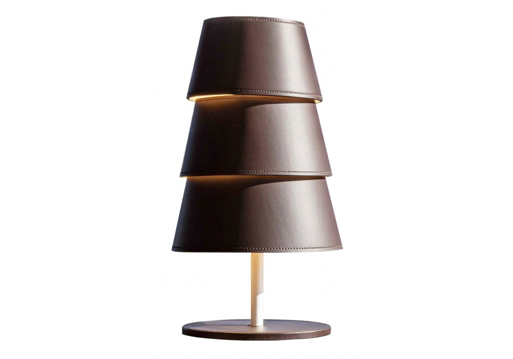 Tulip diseñada por Stefano Santilio para Enrico Pellizzoni es una lámpara de mesa en latón satinado o barnizado blanco. Base circular de metal, difusor y aros revestidos de piel, disponible en varios colores.