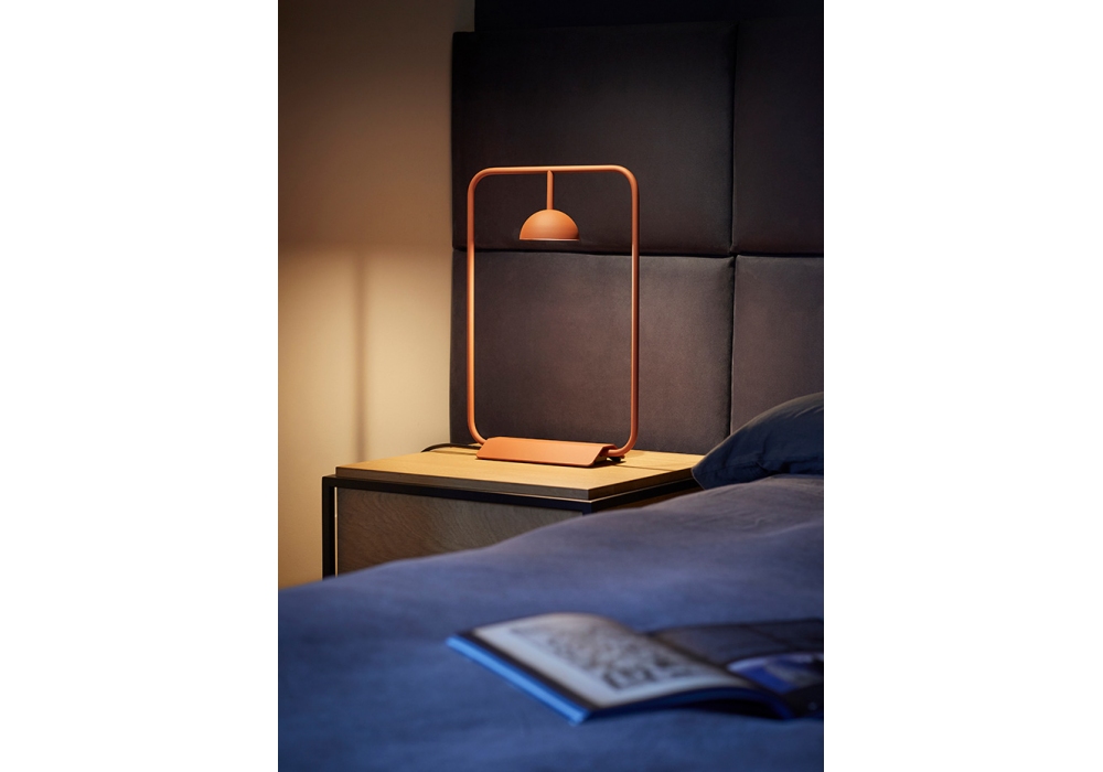 Cupolina diseñada por Boti de Dominicis Studio para Estiluz es una lámpara de mesa con base cuadrangular y estructura tubular en aluminio pintado. El cabezal tiene forma de cúpula de aluminio con difusor de material acrílico y apantalla una fuente de luz tipo LED con interruptor On/Off. Cupolina está disponible en diferentes acabados.