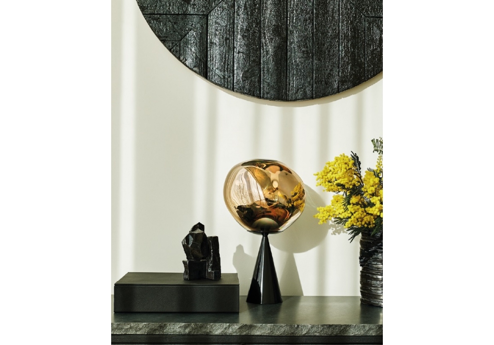 Melt Cone Fat diseñada por Tom Dixon es una lámpara de mesa caracterizada por una base de acero negro brillo, difusor de policarbonato, disponible en diferentes acabados.