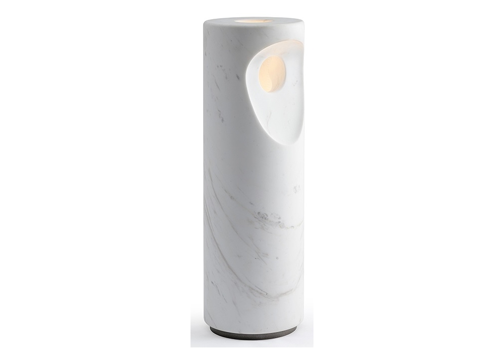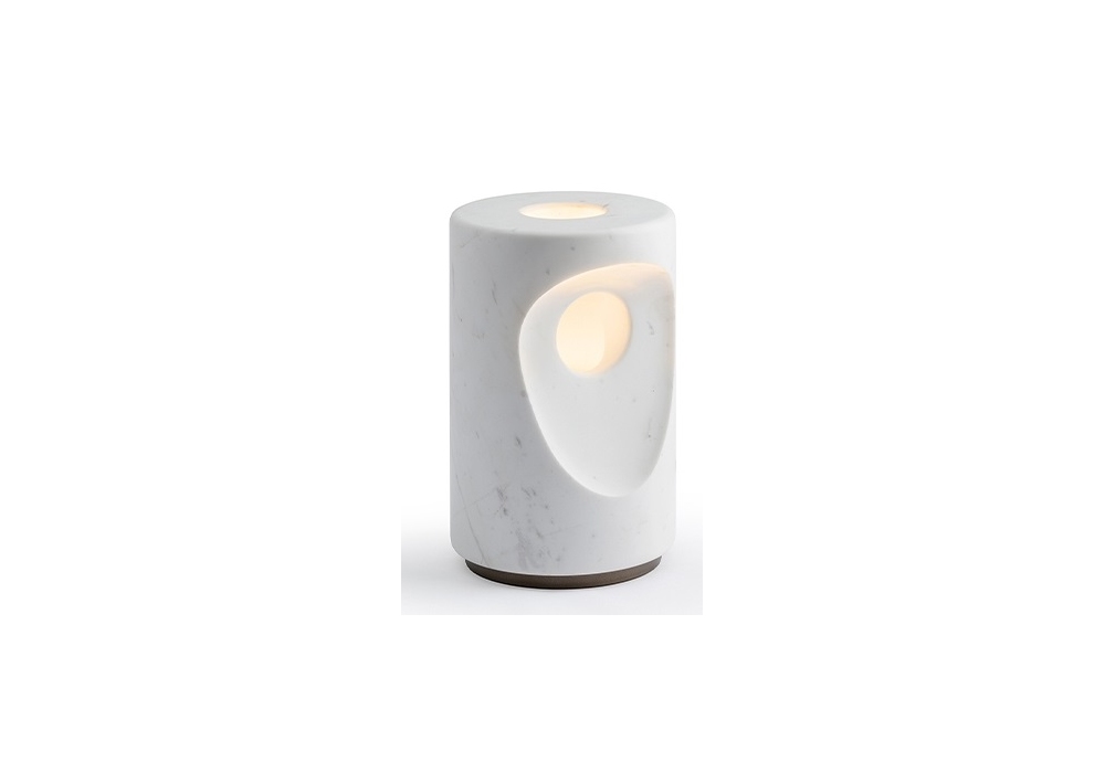 Silhouette diseñada por Gensler para Turri es una lámpara de mesa con base en metal pintado y acabado en mármol Volakas o madera de Fresno. Disponible en diferentes dimensiones.