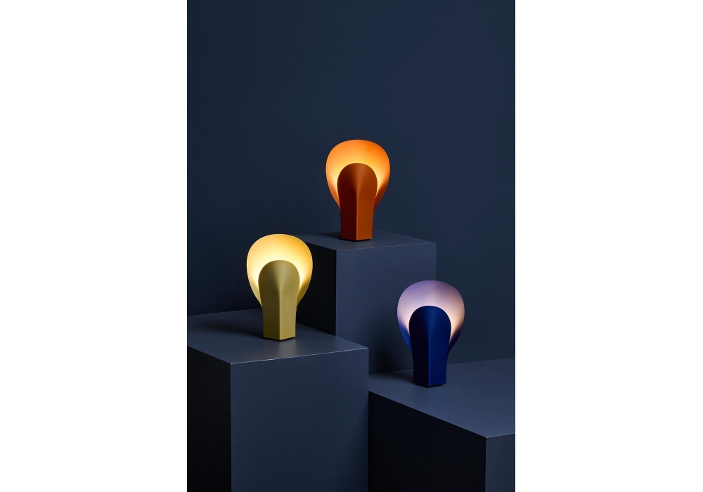 Plume diseñada por Tom Skeehan para Rakumba es una lámpara de mesa realizada en aluminio disponible en diferentes acabados.