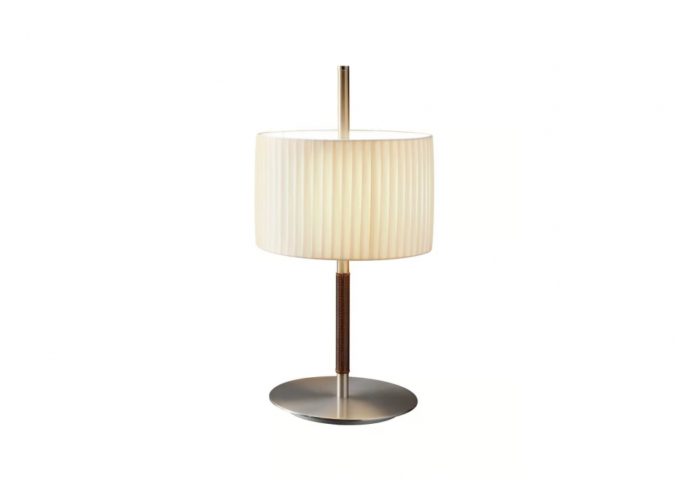 Danona diseñada por Joana Bover para Bover es una lámpara de mesa con base circular y varilla vertical en hierro color níquel satinado con empuñadura de cuero. La pantalla es de forma cilíndrica con un difusor de metacrilato que apantalla una fuente de luz tipo LED. Danona está disponible en diferentes modelos y acabados de pantalla y estructura.