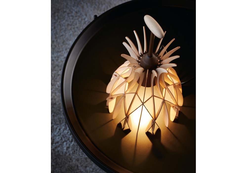 Domita diseñada por Benedetta Tagliabue y Joana Bover para Bover es una lámpara de mesa con cuerpo que actúa también como pantalla estructurada en madera de haya natural tejida. El difusor es cilíndrico de metal pintado y adopta una fuente de luz tipo LED con interruptor de encendido/apagado en el cable de alimentación.