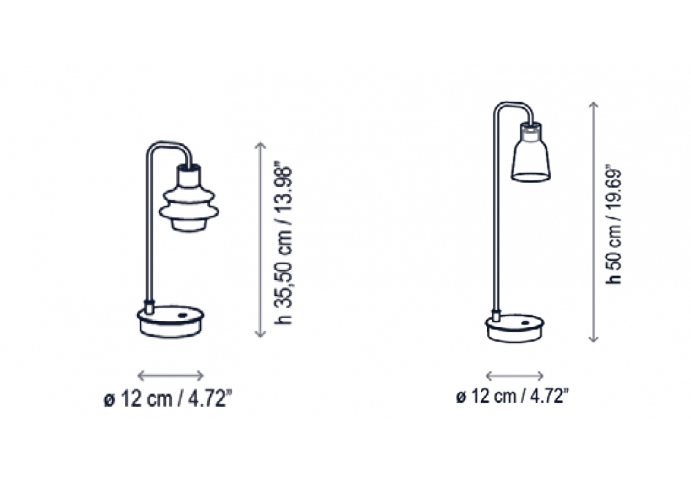 | Dimensiones | Ø 12 x H 35,5 cm; Ø 12 x H 50 cm. |