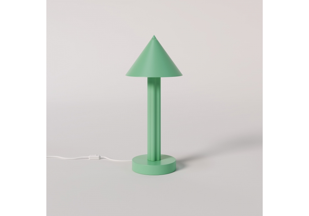 Profiles diseñada por Atelier Areti es una lámpara de mesa realizada en metal pintado, disponible en diferentes acabados y en dos modelos. Bajo pedido también es posible personalizar los colores de la pantalla, del tubo y de la base.