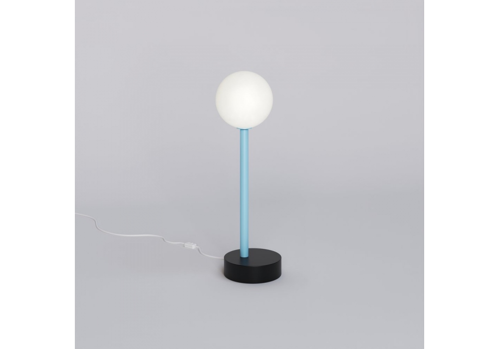 Off Center diseñada por Atelier Areti es una lámpara de mesa realizada en metal pintado, disponible en diferentes acabados. Bajo pedido, también es posible personalizar los colores del cono y de la base.