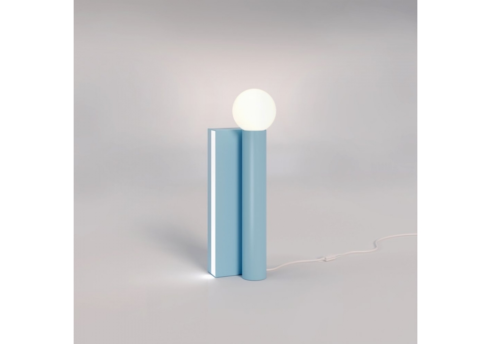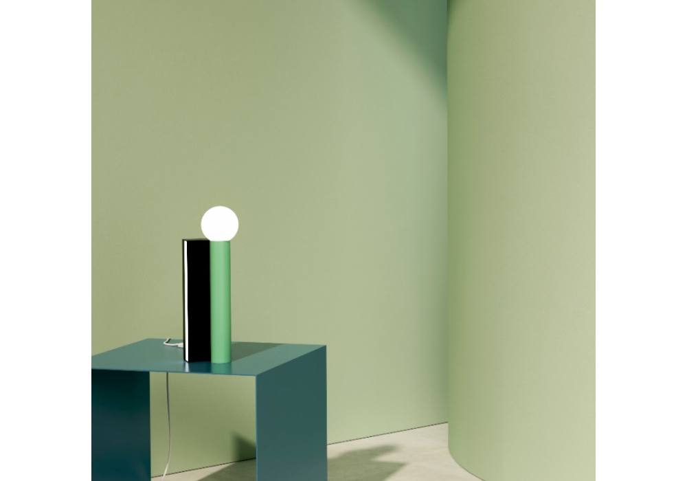 Tube and Rectangle diseñada por Atelier Areti es una lámpara de mesa realizada en metal pintado, disponible en diferentes acabados. Bajo pedido, también es posible personalizar los colores del tubo y del rectángulo.