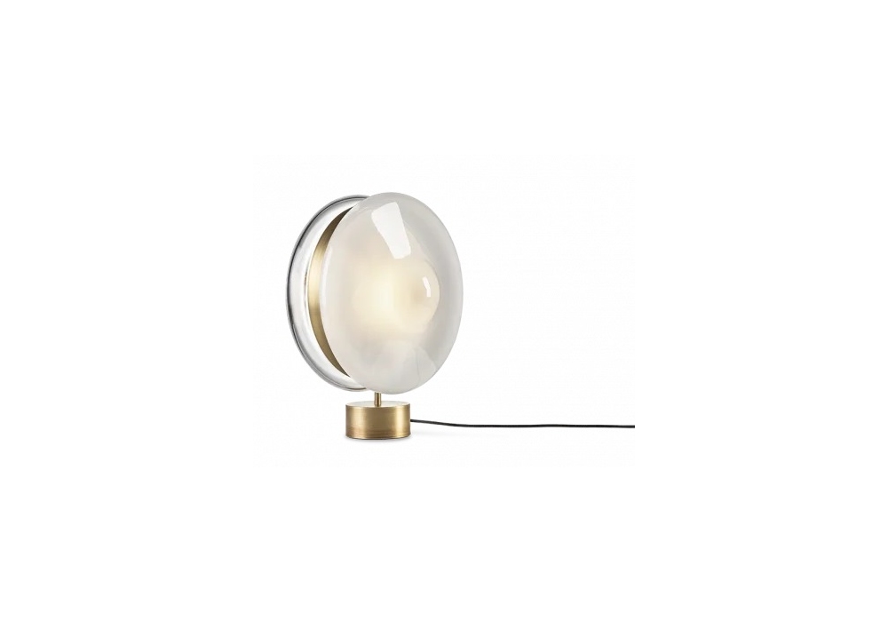 Orbital diseñada por Studio deFORM para Bomma es una lámpara de mesa con difusor de cristal soplado a mano. Está disponible en diferentes acabados.