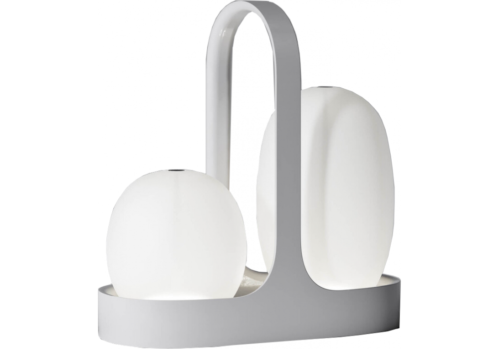 Duo diseñada por Defne Koz + Marco Susani para Italamp es una lámpara de mesa LED compuesta por un par de lámparas compactas inalámbricas, con 8 horas de autonomía. Los difusores extraíbles son de cristal soplado blanco con sensor táctil para regulación. La estructura es de resina en acabado blanco. Cable de alimentación USB incluido.
