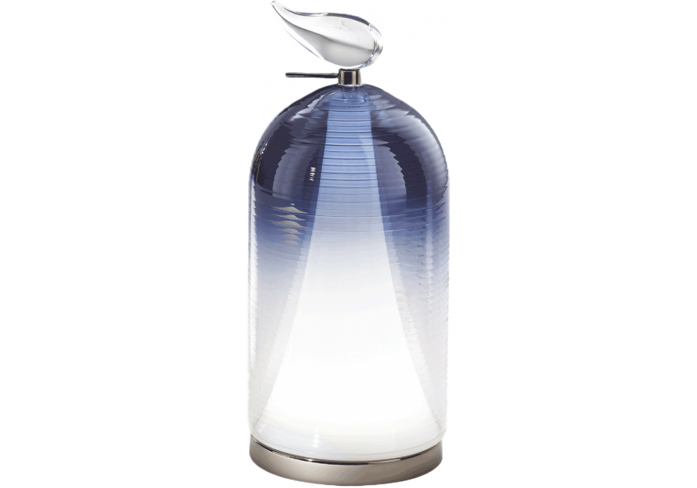Munetta diseñada por Danilo De Rossi para Italamp es una lámpara de mesa compacta inalámbrica con 8 horas de autonomía. Difusor de vidrio soplado acanalado acabado azul sombreado y estructura de metal acabado bronce. Detalle de cristal. Sensor táctil para ajuste. Cable de alimentación USB incluido.