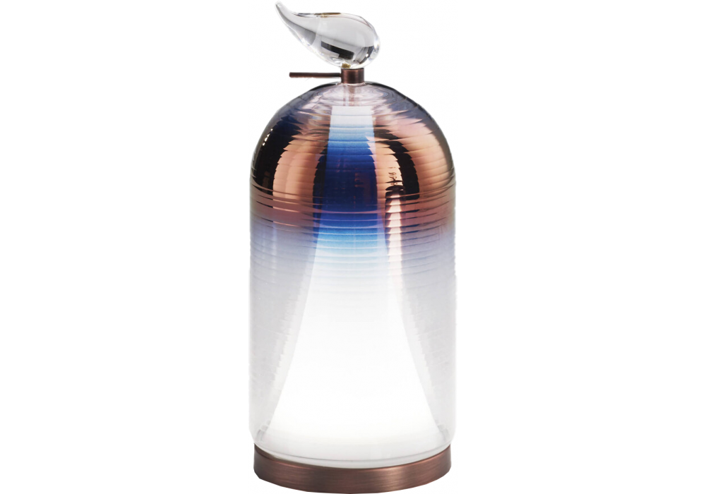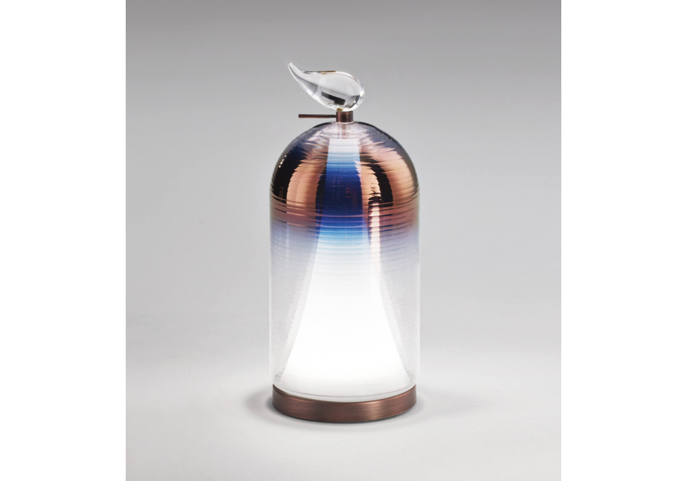 Martina diseñada por Danilo De Rossi para Italamp es una lámpara de mesa compacta inalámbrica con 8 horas de autonomía. Difusor de vidrio soplado acanalado con acabado en banda de cobre y estructura de metal con acabado en cobre cepillado. Detalle de cristal. Sensor táctil para ajuste. Cable de alimentación USB incluido.