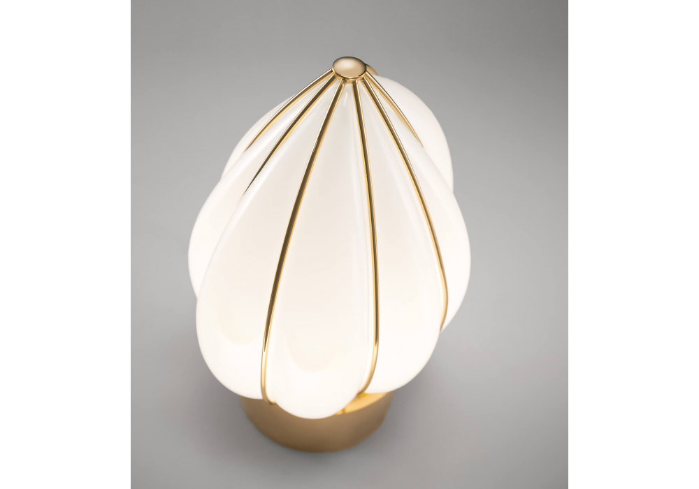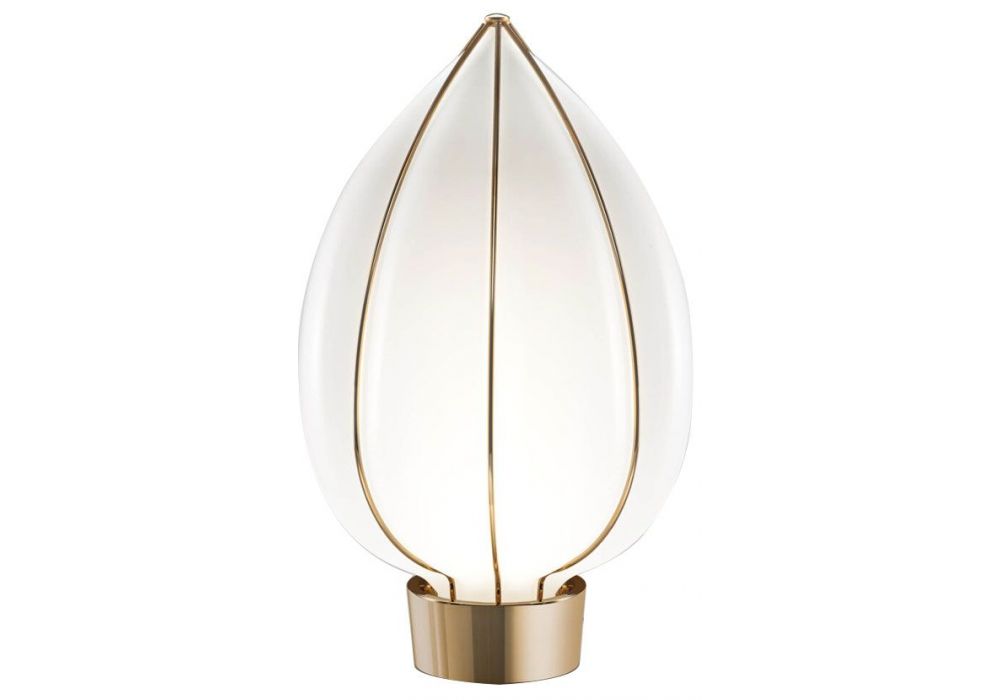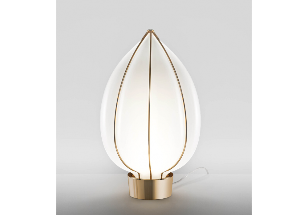 LA diseñada por Camilla Bellini para Italamp es una lámpara de mesa con estructura de metal dorado claro y difusor de vidrio blanco. Disponible en la versión con encendido con o sin tocar la nota La. Cable de alimentación USB incluido.