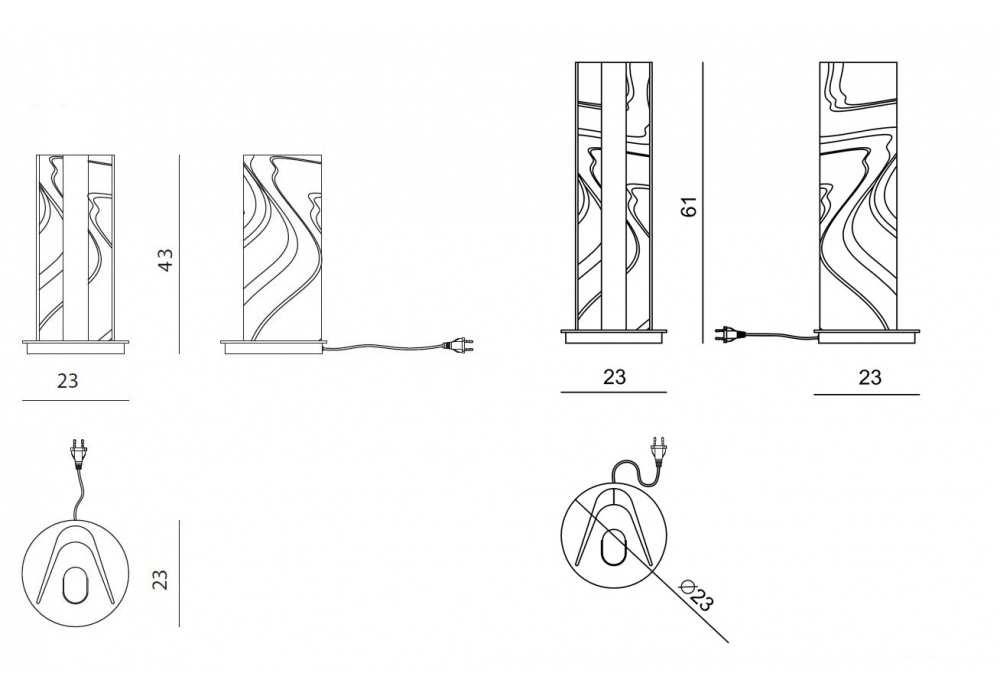| Dimensiones | Ø 23 x H 43 cm; Ø 23 x H 61 cm. |
