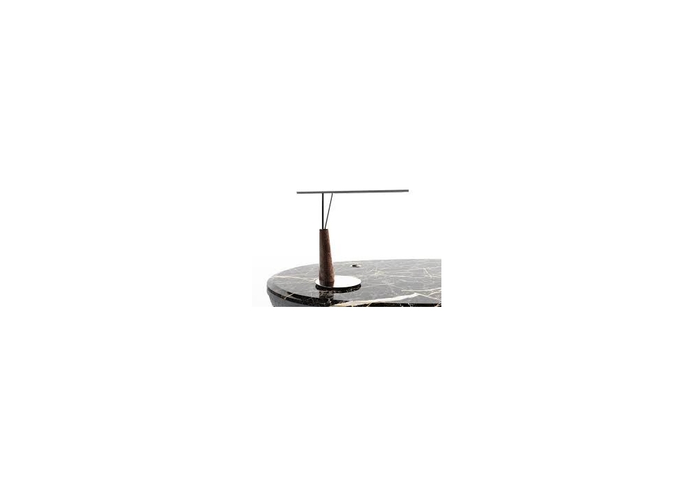 Jasper Radica diseñada por Fabio Bonfà para Visionnaire es una lámpara de mesa con base de disco en acero satinado y cuerpo de brezo de nogal pulido de forma cónica. El proyector tiene forma lineal en latón con brazos tubulares también en latón y adopta una fuente de luz LED regulable. Jasper Radica está disponible en diferentes acabados metálicos.