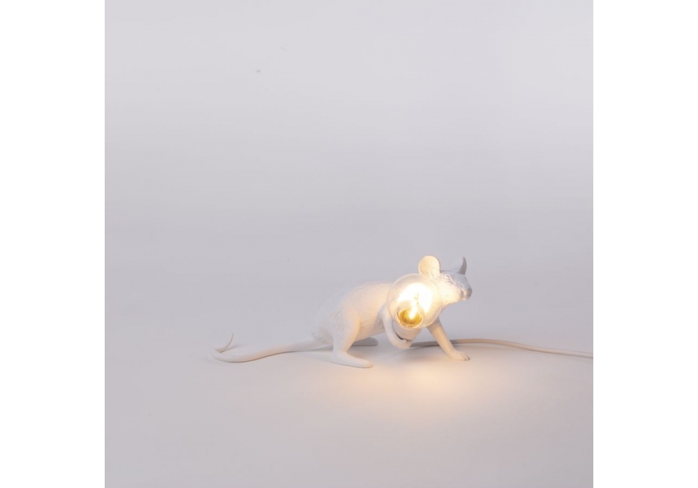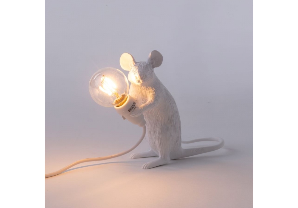 Mouse diseñada por Marcantonio para Seletti es una lámpara de resina blanca con fuente de luz LED alimentada por un cable USB. El ratón está disponible en diferentes tamaños.