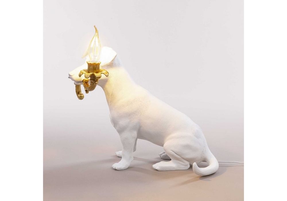 Rio diseñada por Marcantonio para Seletti es una lámpara de resina blanca con detalles en color dorado con fuente de luz LED.