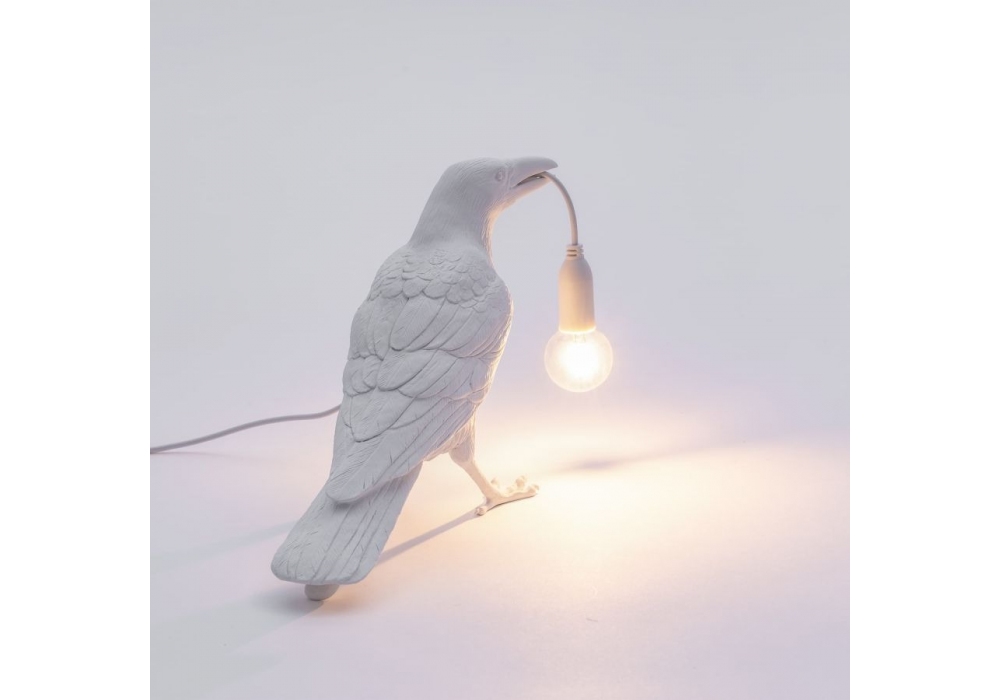 Bird Lamp Waiting diseñada por Marcantonio para Seletti es una lámpara de mesa en resina pintada disponible en diferentes acabados. La fuente de luz adoptada es del tipo LED a 2200 K°.