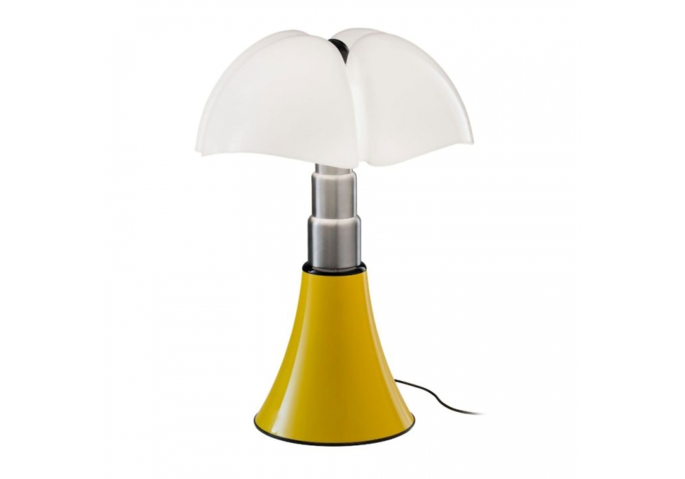 Pipistrello 620 Pop diseñada por Gae Aulenti para Martinelli Luce es una lámpara de mesa con brazo telescópico central en acero inoxidable y base en metal pintado. El difusor está fabricado en metacrilato opalino blanco y protege una fuente de luz LED regulable. Pipistrello 620 Pop está disponible en diferentes acabados.