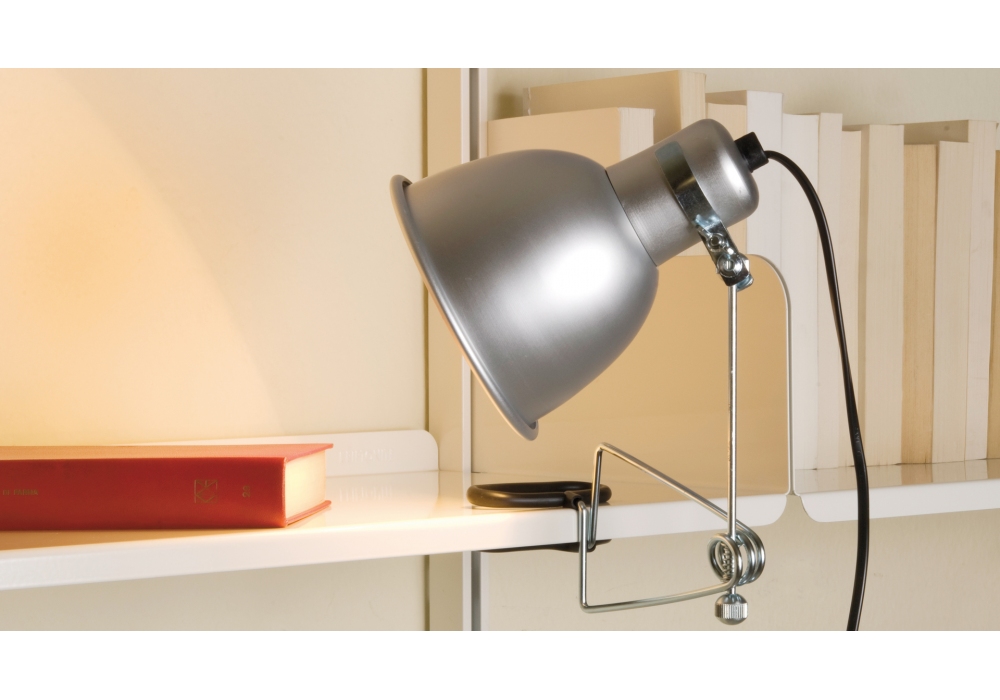 Pinza diseñada por Kriptonite es una lámpara con casquillo de aluminio y brazo articulado, apta para diferentes condiciones de uso gracias al práctico sistema de fijación con abrazadera.