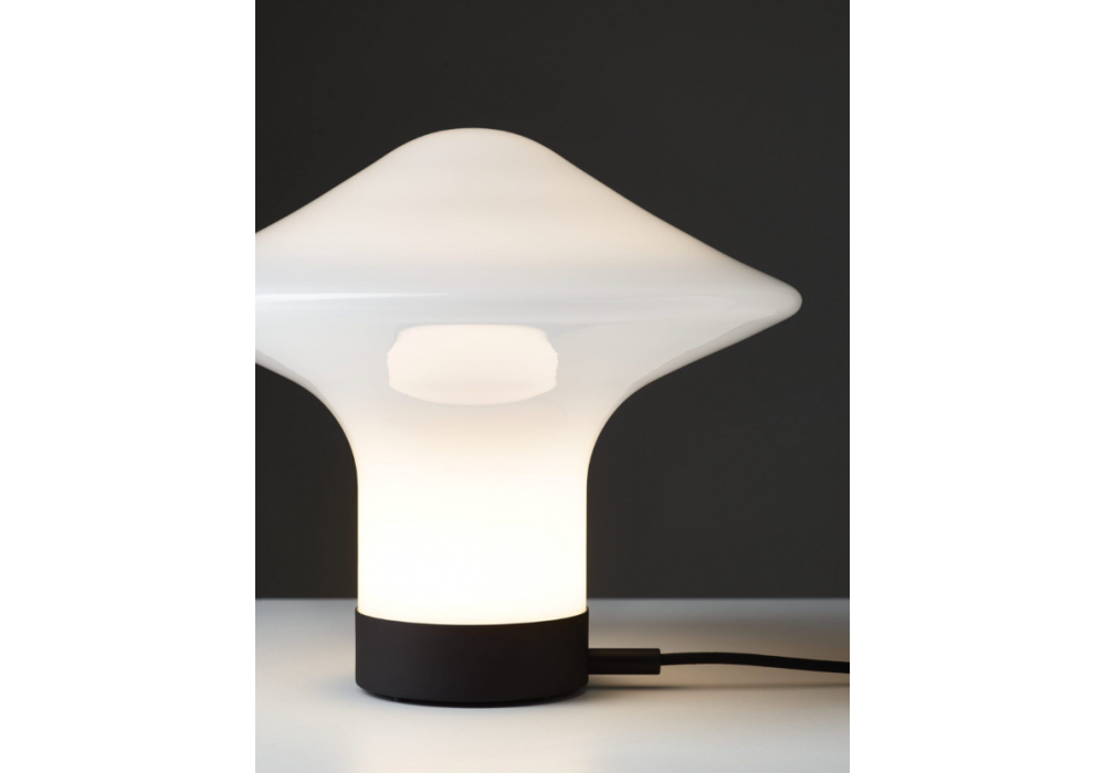 Trottola diseñada por Federico Peri para Brokis, es una lámpara de mesa de vidrio con efecto brillante disponible en varios acabados. El cuerpo y el regulador de intensidad son de metal anodizado del mismo color. El cable de alimentación está equipado con un regulador electrónico para ajustar la intensidad y la temperatura de color de la luz (TW). La fuente de luz es un LED regulable.
