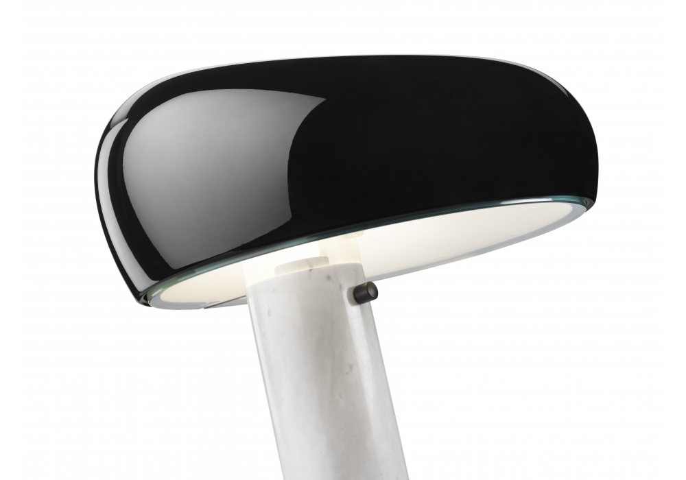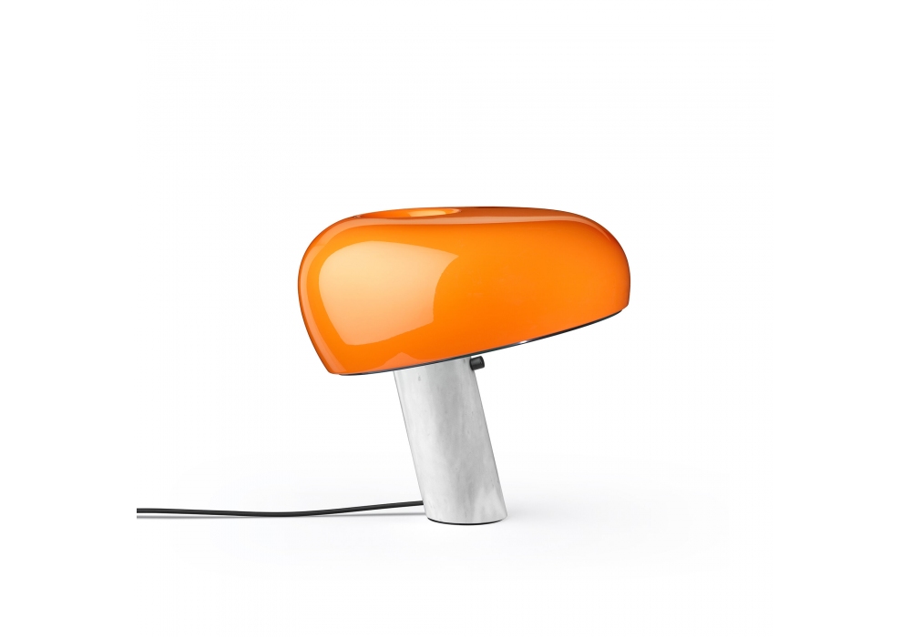 Snoopy diseñada por Achille & Pier Giacomo Castiglioni para Flos es una lámpara de mesa de luz directa con reflector de metal pintado y base de mármol. Regulador de intensidad integrado. Bombilla no incluida.