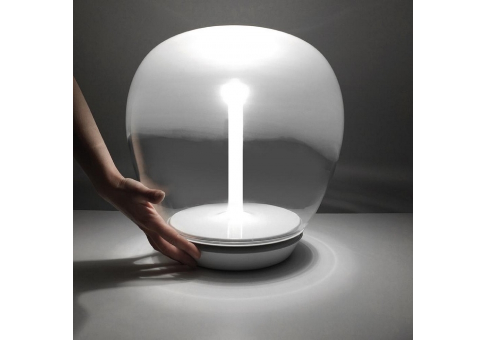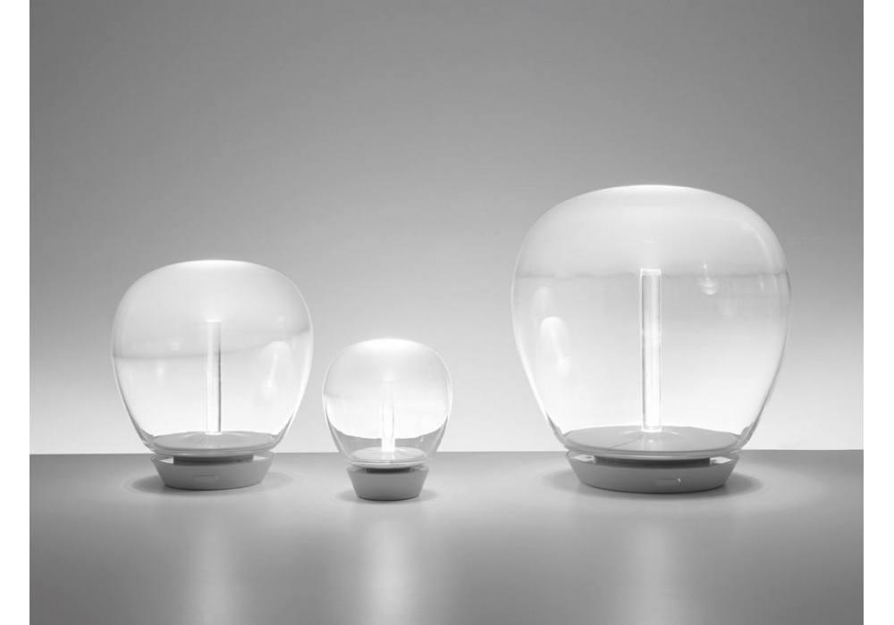 Empatia diseñada por Carlotta de Bevilacqua y Paola di Arianello para Artemide es una lámpara de mesa con base circular de aluminio. El cuerpo de iluminación es de cristal transparente soplado a mano con difusor de metacrilato y pantallas de una fuente de luz LED regulable (incluida). Empatia está disponible en diferentes tamaños.