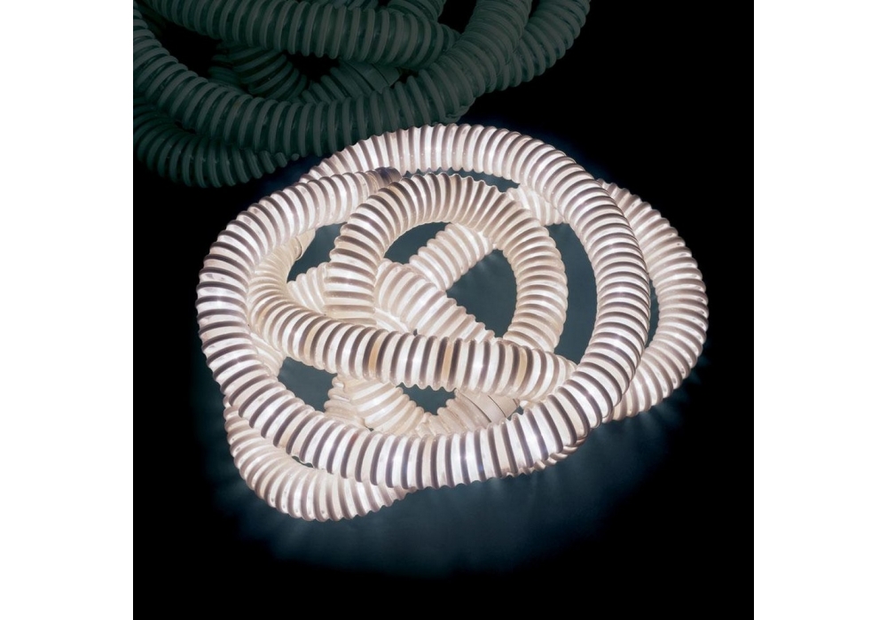 Boalum diseñada por Livio Castiglioni, Gianfranco Frattinidi para Artemide es una lámpara de mesa de pie estructurada en PVC flexible blanco con terminales de resina. Las fuentes de luz adoptadas son del tipo LED integrado. Los distintos elementos están interconectados en serie hasta un máximo de 4 piezas para una longitud de aproximadamente 8 metros.