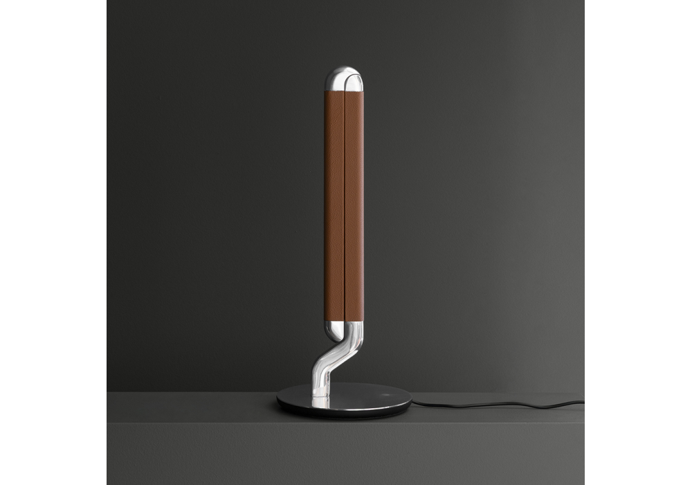 Picchio diseñada por Alessandro Munge para Contardi es una lámpara de lectura equipada con un módulo LED y un regulador de intensidad incorporado. Su estructura está disponible en aluminio pulido o bronce cepillado, con detalles de piel opcionales en color coñac (para aluminio) o café (para bronce). También disponible sin inserciones de piel.