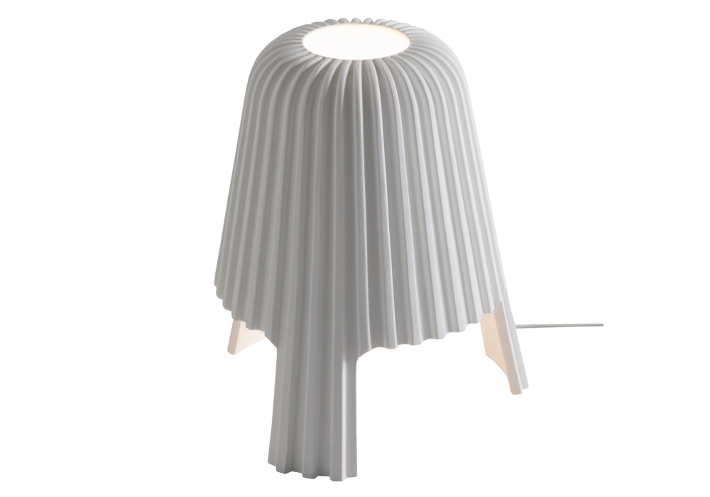 Silk diseñada por Enrico Azzimonti para Bosa es una lámpara de mesa en cerámica con un plissé que da forma a una superficie fina y se balancea como seda en el aire, creando el alma de Silk.