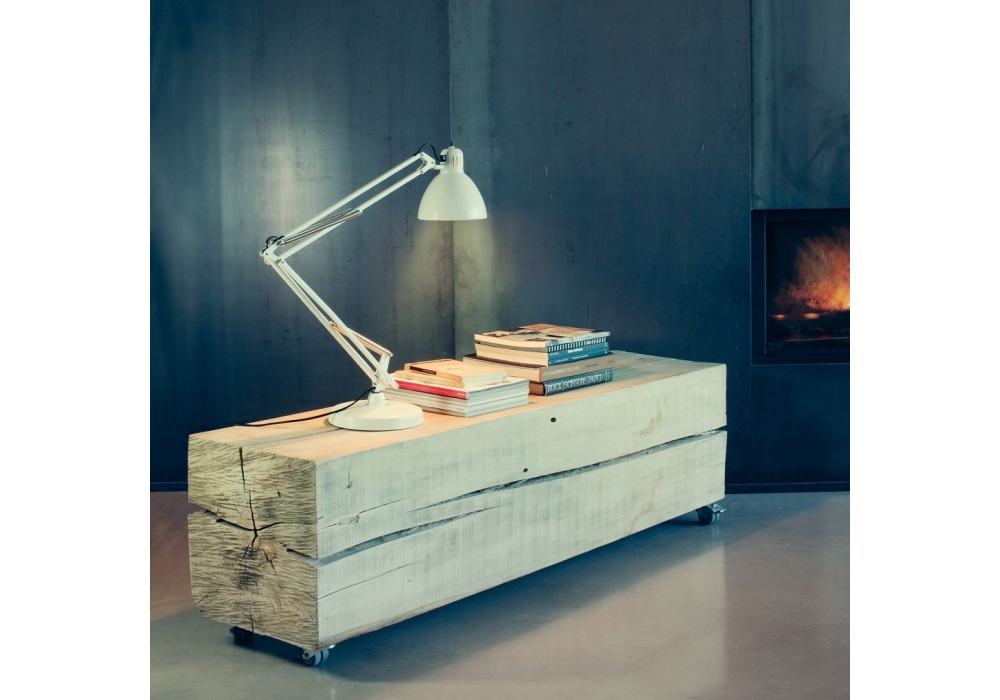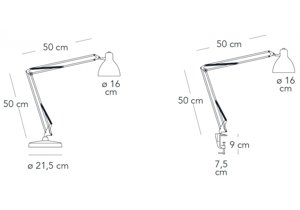 Naska producida y diseñada por FontanaArte es una lámpara de mesa de luz directa no regulable. Base y cuerpo orientable en metal cromado o galvanizado. Encendido mediante interruptor giratorio colocado en la cabeza del difusor. Cable y enchufe negros. Disponible en diferentes dimensiones y acabados.