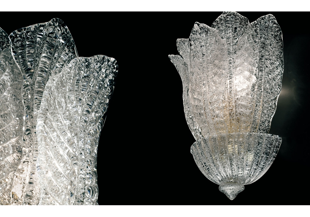 Excelsior diseñada y producida por Barovier & Toso es una lámpara de pared con partes metálicas en oro galvanizado y cuerpo de lámpara estructurado por múltiples aplicaciones en cristal veneciano. La fuente de luz utilizada es del tipo LED regulable o halógena. Excelsior está disponible en diferentes modelos y acabados.