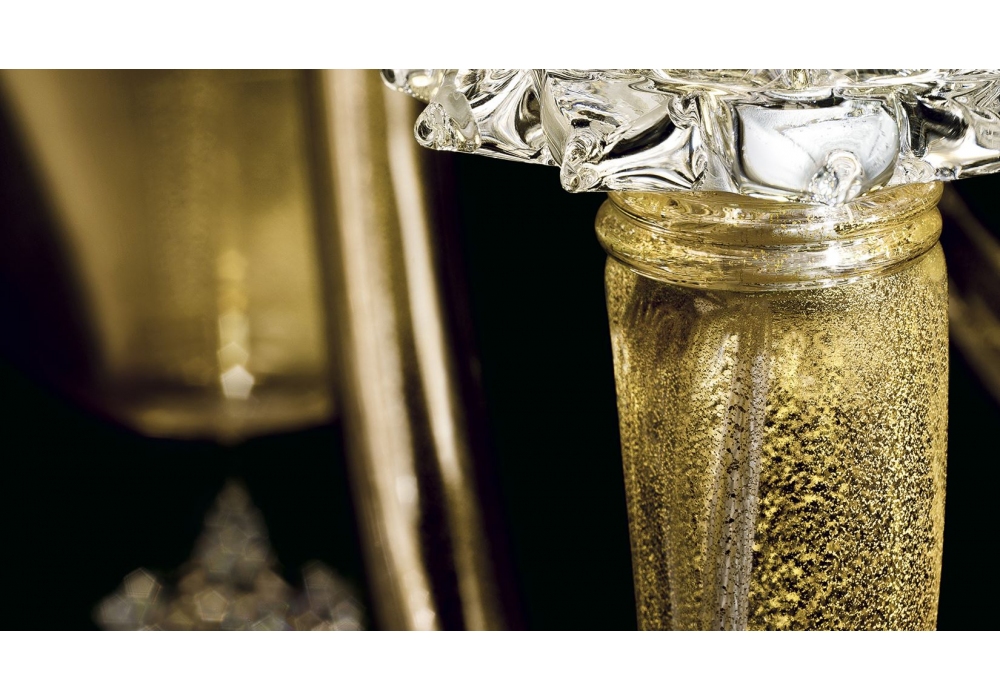Amsterdam diseñada y producida por Barovier & Toso es una lámpara de pared con una estructura portante de metal recubierta de cristal veneciano adornado con bobinas de cristal. Los difusores son de forma circular en tejido y apantallan fuentes de luz LED o halógenas regulables. Amsterdam está disponible en diferentes acabados.