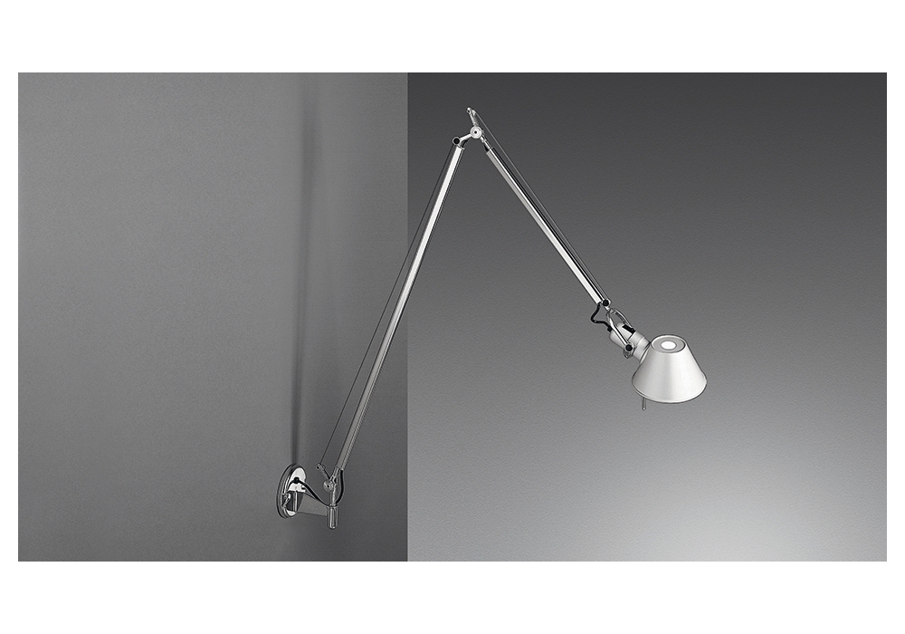Tolomeo Braccio diseñada por Michele De Lucchi & Giancarlo Fassina para Artemide es una lámpara de pared realizada íntegramente en aluminio. La estructura dispone de brazos móviles con articulaciones y soportes en aluminio pulido. El cabezal es ajustable, de forma circular, también fabricado en aluminio y adopta una fuente de luz LED regulable. Tolomeo Braccio está disponible en diferentes tonalidades de luz.