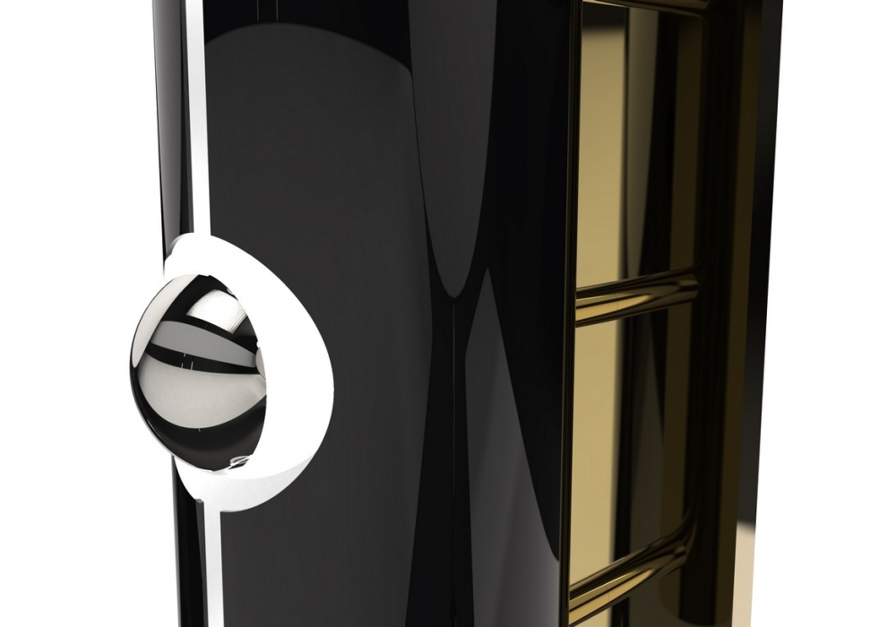 Chuck 3 diseñada por DelightFULL es una lámpara fabricada artesanalmente en latón con un acabado estándar chapado en oro, mientras que la pantalla está construida en aluminio y cuenta con un lacado en negro brillante.