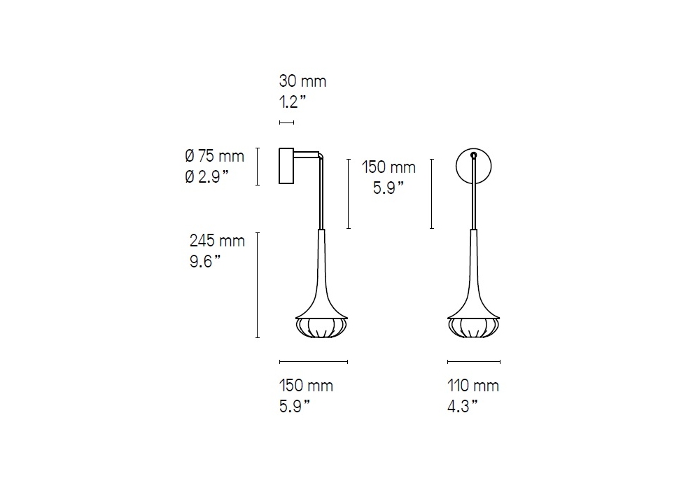 Flea diseñada por Émilie Cathelineau para CVL Luminaires es una lámpara de pared con un diseño clásico. Su diseño se caracteriza por una forma de trompeta que, combinada con las difracciones del cristal transparente, crea maravillosos juegos de luces. Disponible en varios acabados.