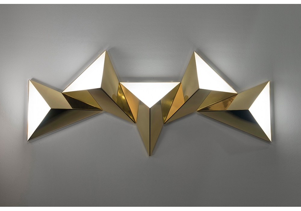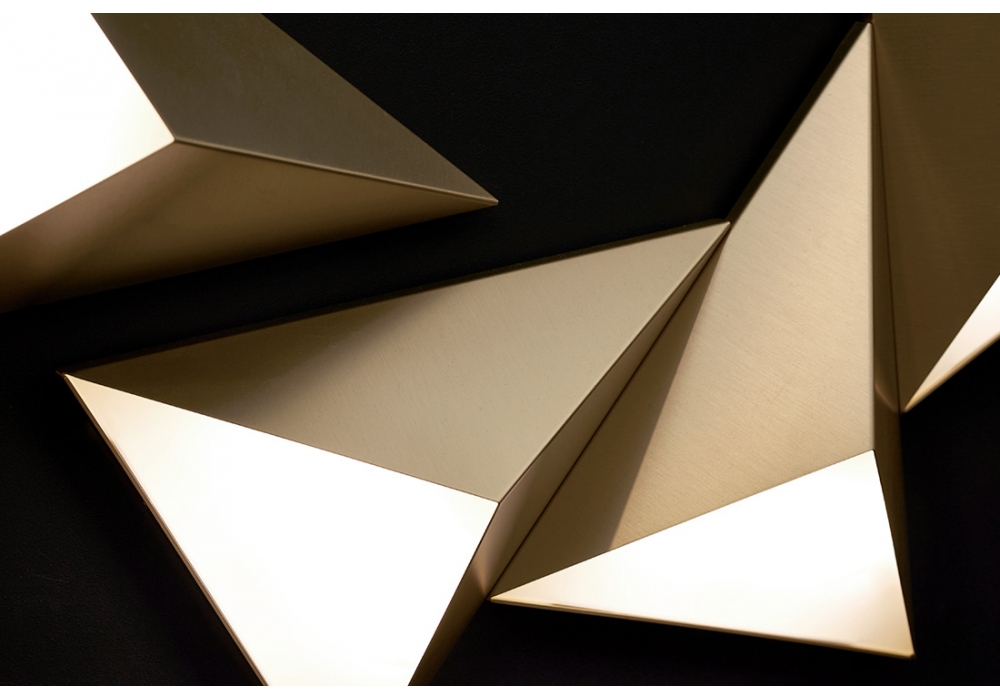 Tetra diseñada por Émilie Cathelineau para CVL Luminaires es una lámpara de pared disponible en varios acabados. Tetra está compuesto por tetraedos de latón que se pueden colocar y conectar entre sí para crear infinitas figuras geométricas. Los siguientes modelos son sólo ejemplos de posibles combinaciones y el montaje de las piezas debe quedar a criterio del cliente.