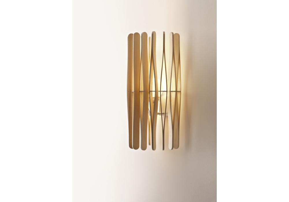 Stick F23 diseñada por Matali Crasset para Fabbian es una lámpara de pared que se caracteriza por un design innovador. La luz se difunde discretamente desde un marco decorado con listones de madera ayous. También disponible en otras fuentes de luz. Índice de protección IP 20.