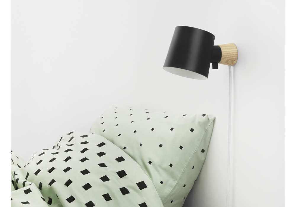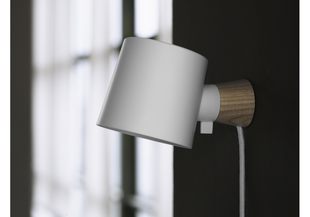 Rise diseñada por Marianne Andersen para Normann Copenhagen es una lámpara de pared con base en roble y difusor en acero pintado en polvo. La base y el difusor cilíndrico de Rise están unidos por un pasador que permite girar la pantalla alrededor de la base y ajustar la dirección de la luz y además permite la iluminación tanto directa como indirecta. Rise está disponible en versión UE (Europa) o EE. UU. (EE. UU.), y modelo con toma de pared o enchufe directo al sistema eléctrico.