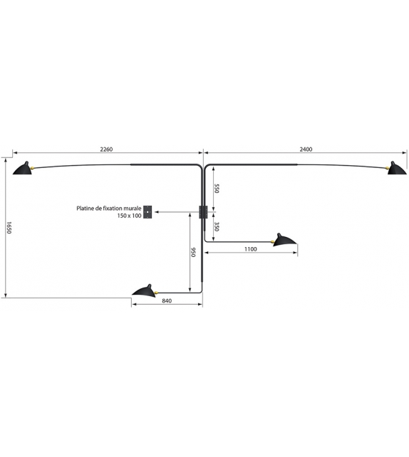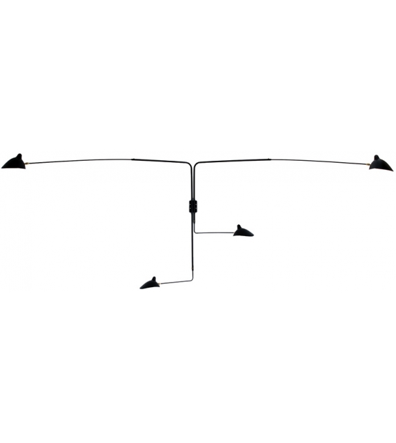 AP4B diseñada por Serge Mouille es una lámpara de pared, la reedición original del modelo 1954. Tiene 4 brazos en acero pintado negro, el reflectors de aluminio lacado negro con interiors blanco. Bombillas: E27 4x42W halógeno (incluida).