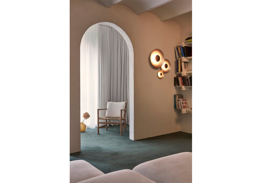 Ginger diseñada por Joan Gaspar para Marset es una lámpara de pared con difusor de madera prensada de 4 mm en roble natural o wengué. Diffusor de aluminio inyectado y lacado en negro mate. Disponible en 3 dimensiones.