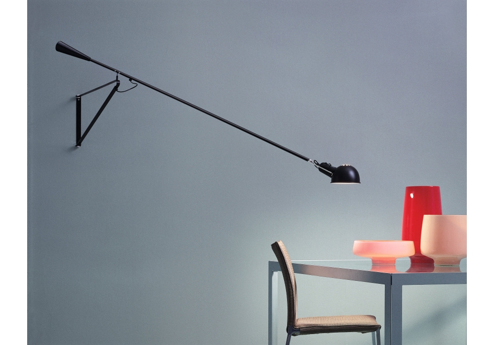 265 diseñada por Paolo Rizzatto para Flos es una lámpara de pared de luz directa. Reflector y brazo orientable de acero pintado líquido. Soporte del reflector de latón cromado. Contrapeso cónico de hierro fundido. Fijación a la pared de acero pintado líquido. Regulable mediante interruptor integrado (regulable a distancia). Bombilla no incluida.