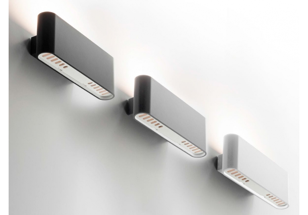 Two Flags diseñada por Ernesto Gismondi & Neil Poulton para Artemide es una lámpara de pared de doble emisión con estructura cuadrangular con esquinas redondeadas realizada íntegramente en aluminio pintado. La fuente de luz adoptada es de tipo LED protegida por una placa de vidrio de borosilicato. Two Flags está disponible en diferentes acabados.