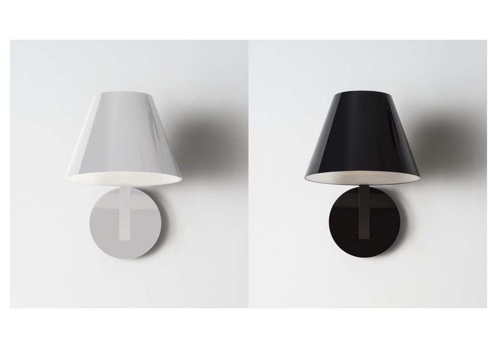 La Petite diseñada por Andrea Quaglio y Manuela Simonelli para Artemide es una lámpara de pared. con base de anclaje circular y varilla vertical de aluminio pintado. La pantalla es de policarbonato con difusor interno de metacrilato y protege una fuente de luz LED regulable. La Petite está disponible en diferentes acabados.