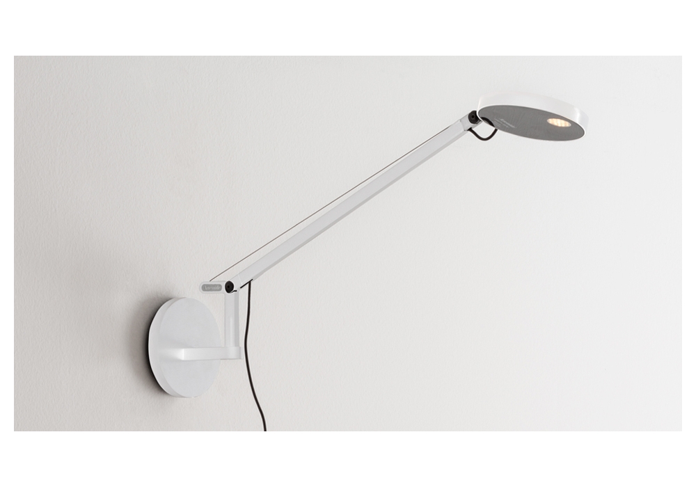 Demetra Micro diseñada por Naoto Fukasawa para Artemide es una lámpara de pared con estructura de anclaje y brazo móvil en aluminio pintado. El cabezal es orientable con un difusor de tecnopolímero que adopta una fuente de luz LED regulable. Demetra Micro está disponible en diferentes acabados y tonalidades de luz.
