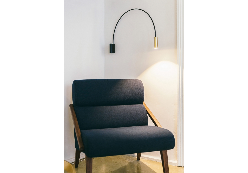 Volta diseñada por Nahtrang Studio para Estiluz es una lámpara de pared con estructura portante en tubular de aluminio negro. El cabezal tiene forma cilíndrica de aluminio con difusor de PMMA y óptica que apantalla una fuente de luz tipo LED. Volta está disponible en diferentes acabados, versiones y medidas.