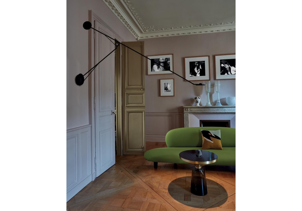 Aaro diseñada por Simon Schmitz para DCW Éditions es una lámpara de pared con estructura realizada en aluminio anodizado y acero, lacada negro.