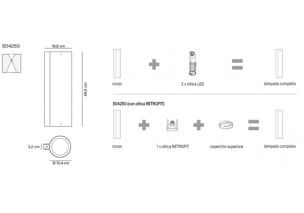 e04 diseñada por Habits Studio para Luceplan es una lámpara de pared realizada en extrusión de aluminio pintado en diferentes acabados satinados. Disponible con diferentes ópticas.